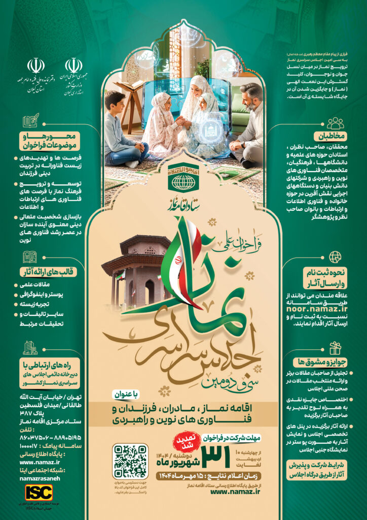 ﺳﺘﺎﺩ ﺍﻗﺎﻣﻪ ﻧﻤﺎﺯ ﺩﺭ ﻧﻈﺮ ﺩﺍﺭﺩ ﺑﺎ ﺍﺳﺘﻌﺎﻧﺖ ﺍﺯ ﺧﺪﺍﻭﻧﺪ ﺣﮑﯿﻢ ﺳﯽ ﻭ ﺩﻭﻣﯿﻦ ﺍﺟﻼﺱ ﺳﺮﺍﺳﺮﯼ ﺍﻗﺎﻣﻪ ﻧﻤﺎﺯ ﺭﺍ ﺩﺭ ﺳﺎﻝ ﺟﺎﺭﯼ ﺑﺎ ﻣﻮﺿﻮﻉ ” ﺍﻗﺎﻣﻪ ﻧﻤﺎﺯ، ﻣﺎﺩﺭﺍﻥ، ﻓﺮﺯﻧﺪﺍﻥ ﻭ ﻓﻨﺎﻭﺭﯼﻫﺎﯼ ﻧﻮﯾﻦ ﻭ ﺭﺍﻫﺒﺮﺩﯼ” ﺑﺎ ﻣﺸﺎﺭﮐﺖ ﺍﻫﻞ ﻓﻦ ﻭ ﺩﺳﺘﮕﺎﻩ ﻫﺎﯼ ﺍﺟﺮﺍﯾﯽ ﺩﺭ ﺣﻮﺯﻩ ﺧﺎﻧﻮﺍﺩﻩ ﻭ ﻓﻨﺎﻭﺭﯼ ﺍﻃﻼﻋﺎﺕ ﻭ ﺍﺭﺗﺒﺎﻃﺎﺕ ﺑﺮﮔﺰﺍﺭ ﮐﻨﺪ ﺑﻪ ﺍﯾﻦ ﺍﻣﯿﺪ ﮐﻪ ﺍﯾﻦ ﺭﻭﯾﺪﺍﺩ ﭘﺮ ﺍﻫﻤﯿﺖ ﺩﺳﺘﻤﺎﯾﻪﺍﯼ ﺑﺮﺍﯼ ﺗﻮﻟﯿﺪ ﻋﻠﻢ ﻭ ﺍﺭﺍﺋﻪ ﻃﺮﯾﻖ ﻭ ﺑﺤﺚ ﻭ ﺗﺒﺎﺩﻝ ﻧﻈﺮ ﺗﻮﺳﻂ ﺍﻧﺪﯾﺸﻤﻨﺪﺍﻥ ﻭ ﻓﻌﺎﻻﻥ ﻭ ﺻﺎﺣﺐ ﻧﻈﺮﺍﻥ ﻗﺮﺍﺭ ﮔﯿﺮﺩ ﻭ ﺍﺯ ﺍﯾﻦ ﺭﻫﮕﺬﺭ ﭘﺲ ﺍﺯ ﺍﻧﺠﺎﻡ ﻣﻄﺎﻟﻌﺎﺕ ﮐﺎﺭﺷﻨﺎﺳﯽ ﻭ ﺗﺪﻭﯾﻦ ﺭﺍﻫﮑﺎﺭﻫﺎ، ﺯﻣﯿﻨﻪ ﺗﺤﻮﻝ ﺩﺭ ﺣﺮﮐﺖ ﺍﻗﺎﻣﻪ ﻧﻤﺎﺯ ﺁﯾﻨﺪﻩ ﺳﺎﺯﺍﻥ ﺍﯾﻦ ﻣﺮﺯ ﻭ ﺑﻮﻡ ﻣﻮﺣﺪ ﭘﺮﻭﺭ ﻓﺮﺍﻫﻢ ﮔﺮﺩﺩ.